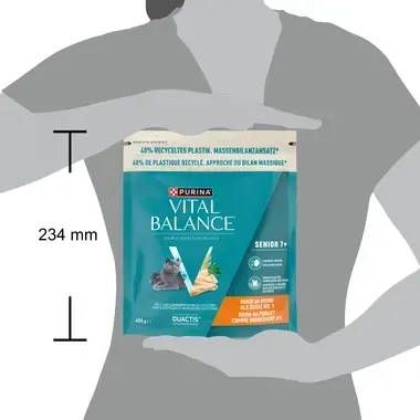 PURINA VITAL BALANCE® SENIOR 7+ ist eine Nahrung, die speziell auf die Bedürfnisse von Katzen im Alter von 7 Jahren und älter abgestimmt ist.