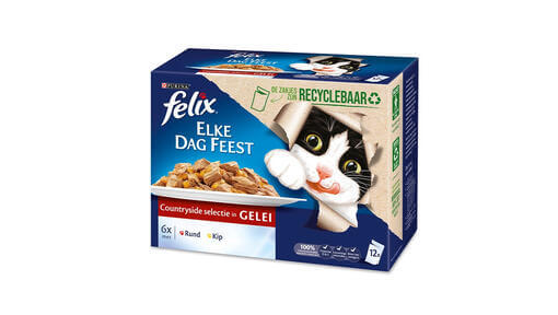 In den Niederlanden testet Purina die erste recycelbare, flexible Kunststoffverpackung für Nassfutter, um die Recyclingfähigkeit von Tierfutterverpackungen zu verbessern. Die FELIX-Beutelverpackung besteht vollständig aus Polypropylen (PP) und ist somit recycelbar, ohne die Funktionalitäten einer lebensmitteltauglichen Verpackung zu beeinträchtigen.