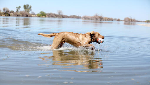 Der Chesapeake Bay Retriever ist ein grosser, muskulöser und kräftiger Hund, der Schwimmhäute zwischen den Zehen hat. Sein wasserabweisendes Fell ist kurz und dick, mit rauem, öligem Deckhaar und feinem, wolligem Unterfell. Die Farbe des Fells wird als „totes Gras“ beschrieben, liegt also zwischen Stroh und Farnkraut; diese Retriever können aber auch rot/gold oder braun sein. Erwachsene Rüden messen 58 bis 66 cm und wiegen 29,5 bis 36,4 kg. Erwachsene Hündinnen kommen auf 53 bis 61 cm und wiegen 25 bis 31,8 kg.