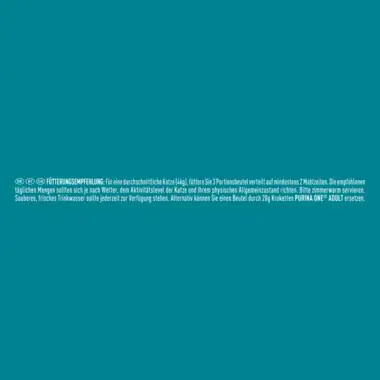 Les rations journalières recommandées doivent être ajustées selon les conditions climatiques, le niveau d'activité du chat et sa condition physique. Servir à température ambiante. Un bol d'eau propre et fraîche doit toujours être à sa disposition. Vous pouvez également remplacer un sachet par 20 g de croquettes de PURINA ONE® ADULT.